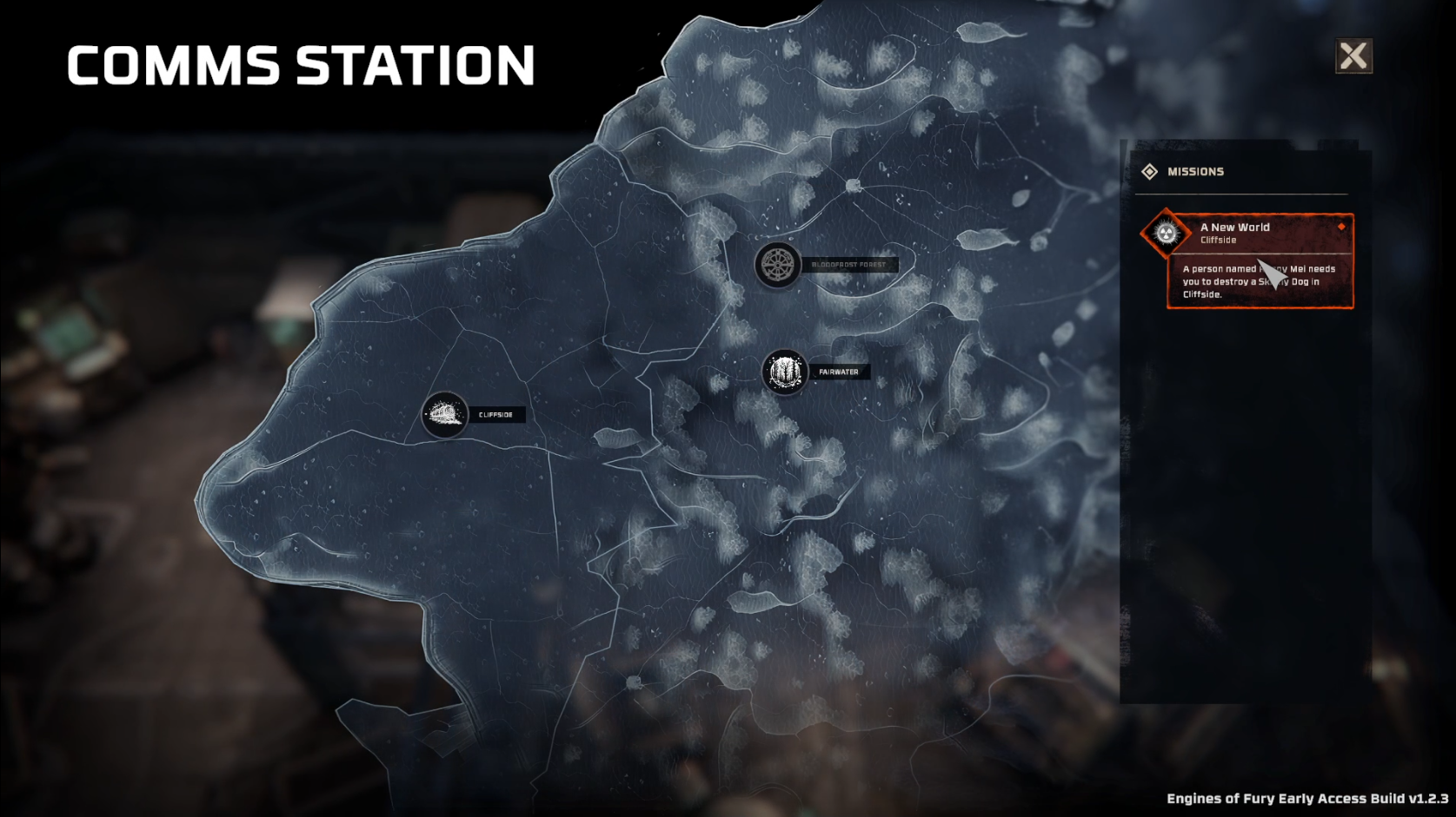 - Comms Station: The station is where you progress the game. Select Missions to be performed and select the map to explore