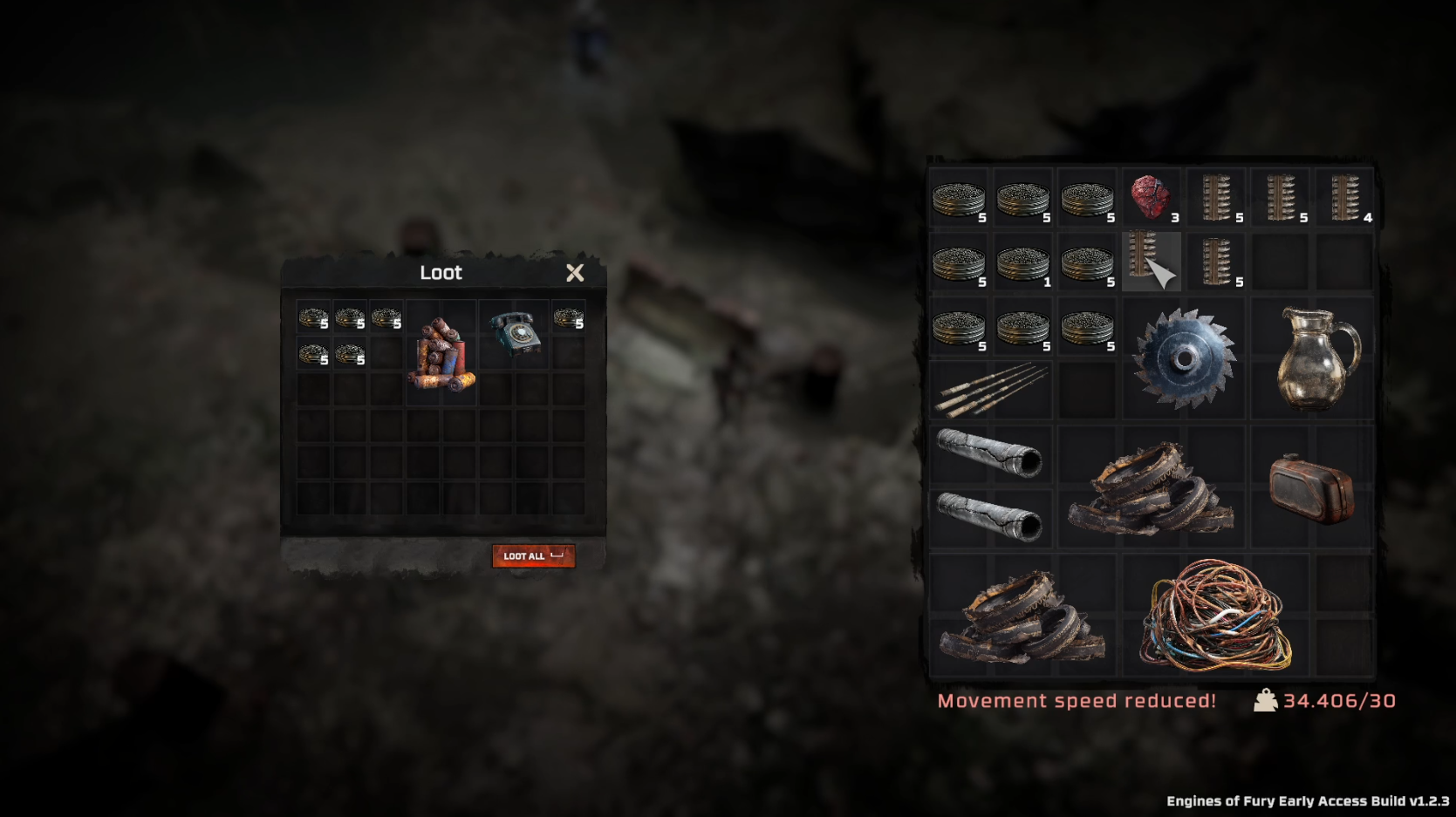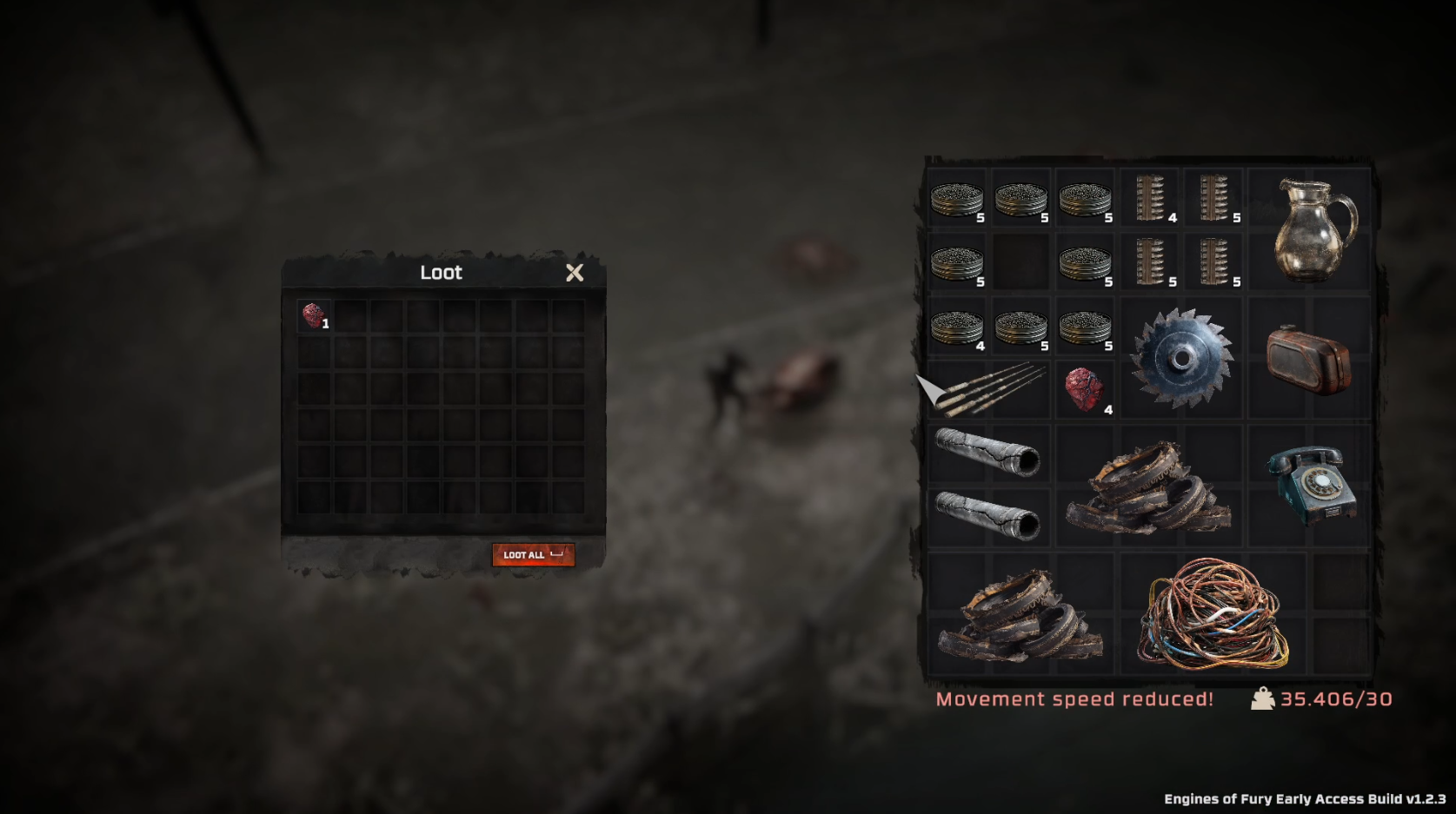 Looting is the heartbeat of Engines of Fury. Each fallen enemy has a chance to drop materials, ammo, or rare resources that can later be used to craft and upgrade gear.