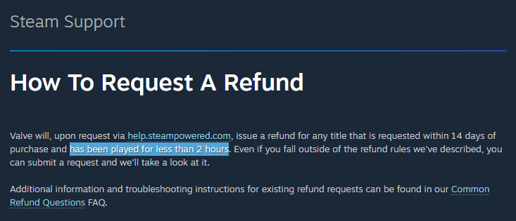An important feature of the Steam store is that there’s a refund policy. Games bought can be refunded if you have played for less than 2 hours. If you don’t like the game, you’re free to return the game. No questions asked.