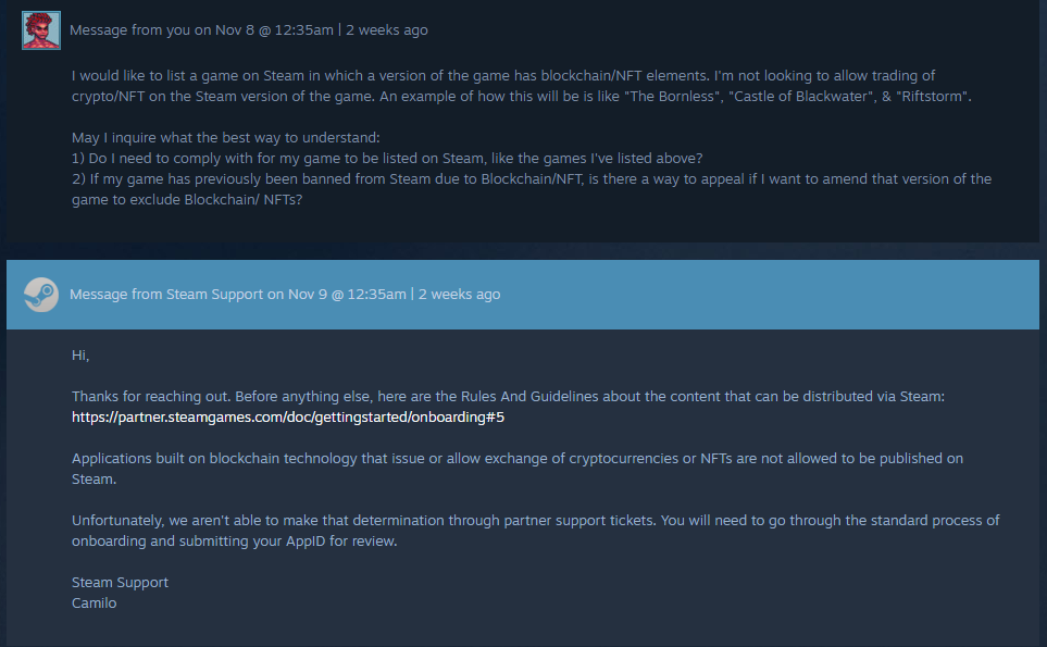 I guess that its similar to how adult (18+) games were previously banned on Steam. Valve is still currently assessing how to allow Web3 on Steam while protecting its users.