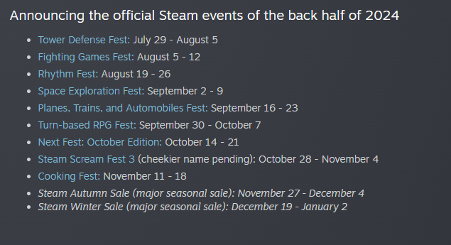 Steam Sales helps fully release games to capture more audience. But the Steam Festival Events help new games instead. This is how it works: