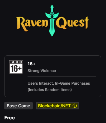 On Epic, there's a tagging on each specific game if it contains any blockchain/NFT elements. Though this tagging can't be used to browse on the Epic Store.