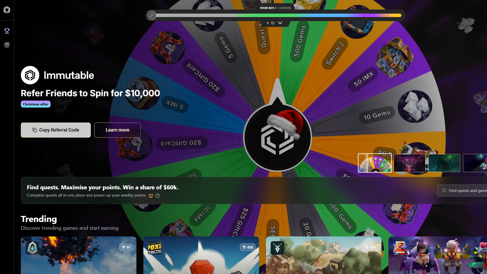 Immutable's quest programme for gamers to enjoy rewards while playing games that use the Immutable chain. Signing up there allows you to create your Immutable wallet and find games directly on the site.