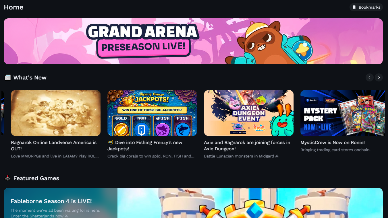 Ronin's all-in-one application for gamers to get started. You can either download the app on iOS/Android or via a web app instead. All games using the Ronin chain are listed in the app.